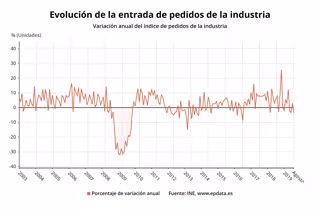 Evolución de la entrada de pedidos de la industria. Variación anual del índice de pedidos de la industria en septiembre - EUROPA PRESS
