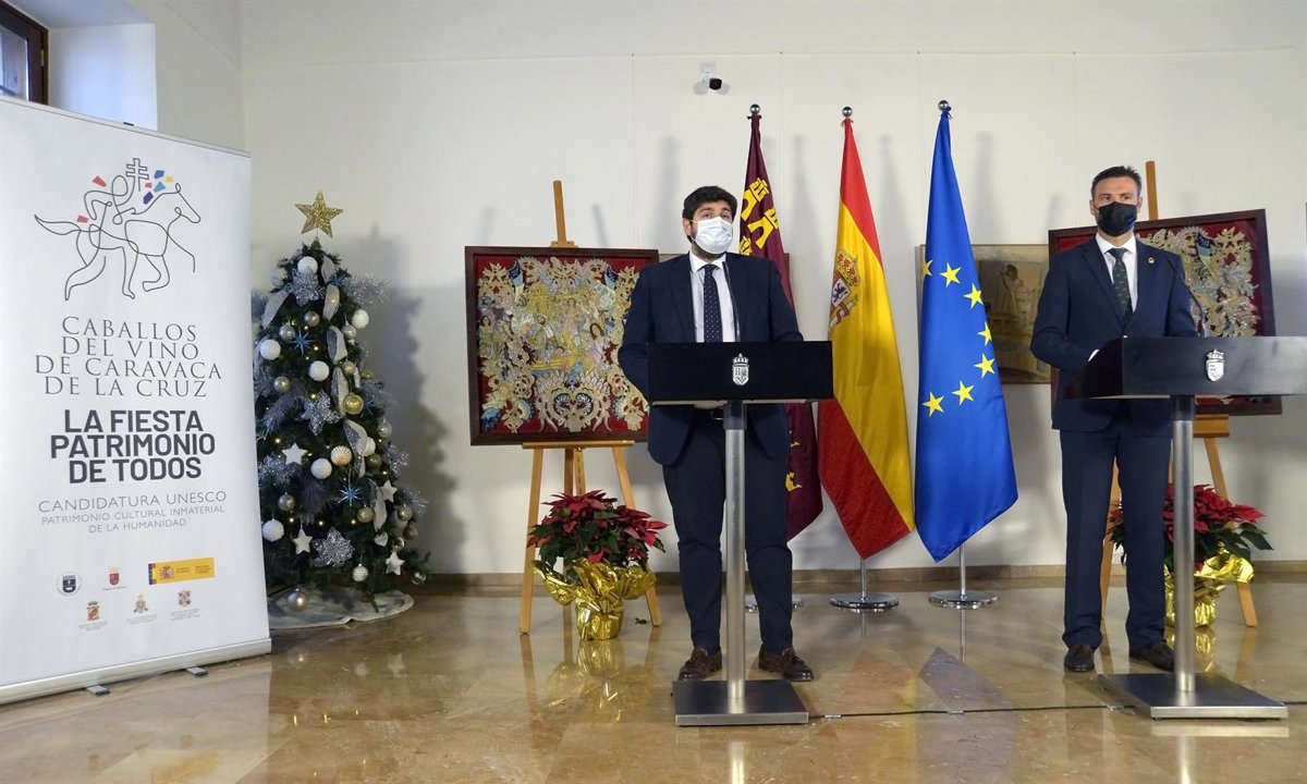 Durante la presentación del vídeo de apoyo a la candidatura de los Caballos del Vino a Patrimonio Cultural Inmaterial de la Humanidad por la Unesco, el presidente puso en valor que "la historia de Caravaca de la Cruz se manifiesta en monumentos, en tradiciones y, cómo no, en unas fiestas singulares que deben obtener el máximo reconocimiento". "Los Caballos del Vino son patrimonio cultural de Caravaca, de la Región de Murcia, de España y también, por supuesto, de la humanidad", remarcó.