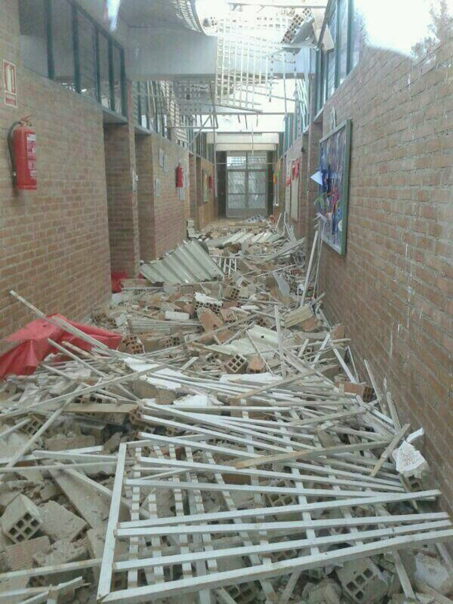 Desde primeras horas de esta mañana, la empresa de mantenimiento de los colegios ha comenzado a retirar los elementos peligrosos para los alumnos y a clausurar el módulo, mientras se procede a su reparación.