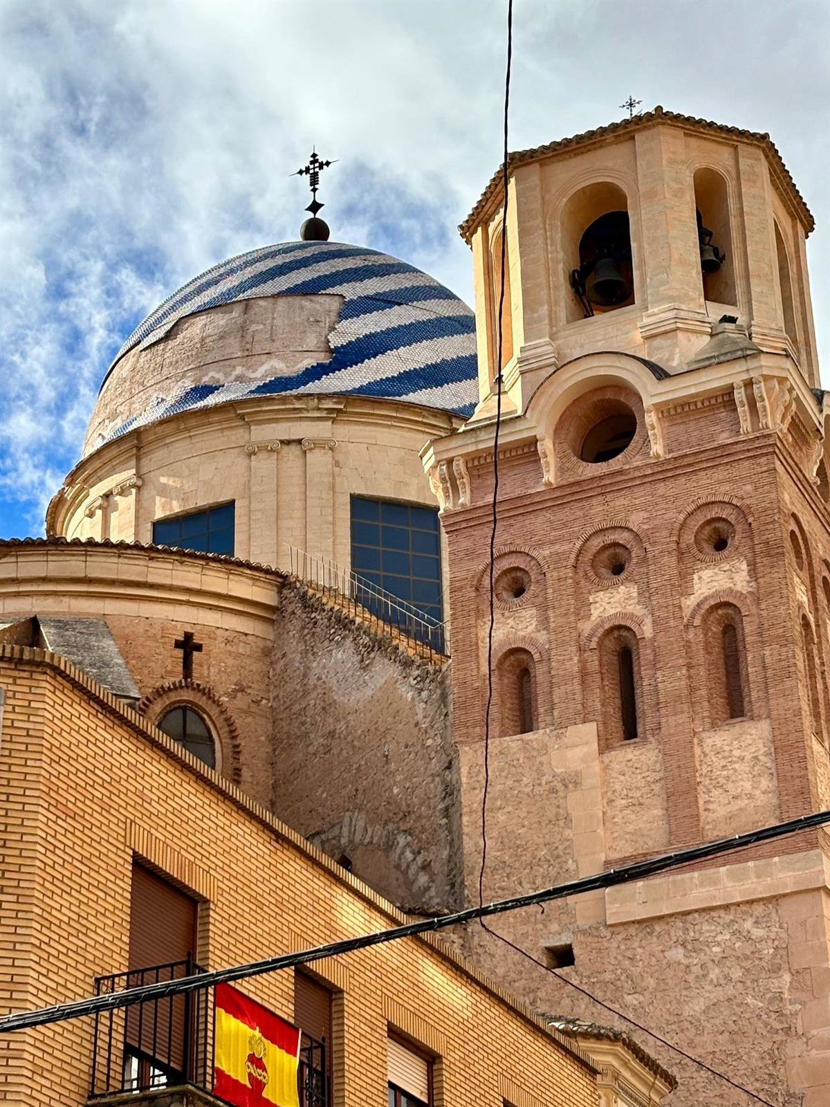 El fuerte viento provocado por la borrasca 'Leonardo' ha arrancado algunas de las tejas que revisten la cúpula de la basílica de la Purísima de Yecla.