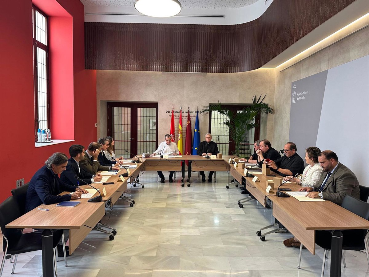 El alcalde de Murcia y el Obispo de la Diócesis de Cartagena presiden el primer encuentro para coordinar los actos conmemorativos de la efeméride que se celebrará en honor a la Patrona en 2027 - AYUNTAMIENTO DE MURCIA