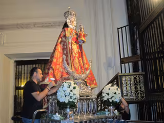La Virgen de la Fuensanta regresará este martes a su santuario con un manto rojo bordado en oro, en una romería que estará amenazada por una previsión de lluvia que podría hacer suspender el cortejo, algo que el Obispado decidirá en función de si finalmente llueve y de la intensidad de la precipitación.