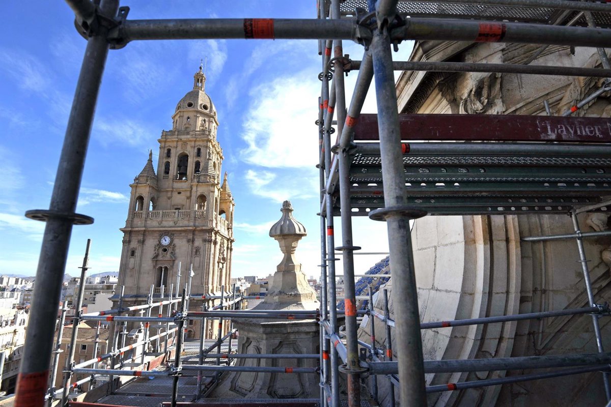 Las visitas guiadas a la fachada de la Catedral de Murcia comenzarán el próximo martes, andamios del imafronte de la Catedral - AYUNTAMIENTO MURCIA