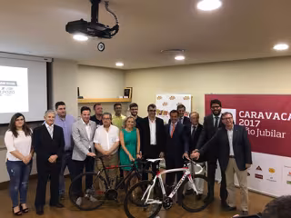 Durante la presentación, que se ha celebrado en la empresa ElPozo Alimentación, la consejera ha estado acompañada, entre otros, por el director general de Turismo, Manuel Fernández-Delgado, el director general de La Vuelta, Javier Guillén, el director general adjunto de ElPozo, Rafael Fuertes, el vicealcalde de Lorca, Francisco Montiel, los concejales de Deportes, Tráfico y Cultura del Ayuntamiento de Alhama de Murcia, el concejal de Cultura de Caravaca de la Cruz y el presidente y vicepresidente de la Federación Murciana de Ciclismo, Sergio Martínez y Miguel Fernández.
