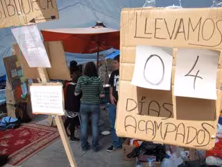 Asimismo, han colocado un panel en el que se pueden colocar papeles con mensajes de lo que cada usuario opina, lo han llamado 'Twitter analógico' y se pueden leer comentarios en contra de la ley electoral actual o de las posturas tomadas por los principales partidos políticos ante la crisis.