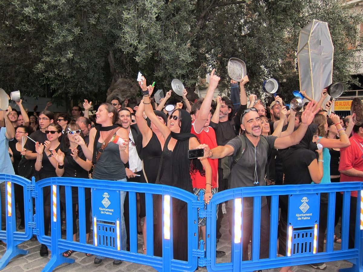 La cacerolada se llevó a cabo tras varias vallas, para impedir que los concentrados pudieran llegar a enfrentarse con el centenar de simpatizantes del PP que también acudieron a la Plaza de Cort, tal como ha explicado a Europa Press el jefe del dispositivo de la Policía Nacional.