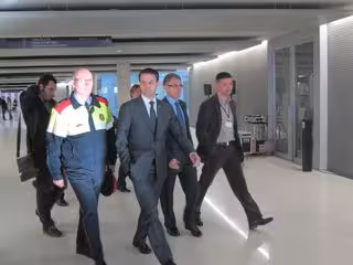 Ha estado en todo momento arropado por el secretario general de Interior, Xavier Gibert, el comisario jefe de los Mossos, Josep Milán, y el comisario portavoz de los Mossos, Joan Miquel Capell, y se ha encontrado con la protesta que protagonizaban una quincena de personas que están en la querella presentada.