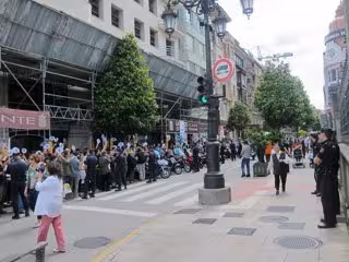 Decenas de 'indignados' convocados por la Asamblea del Movimiento 15-M en Oviedo se han concentrado frente a la Junta General, coincidiendo con la sesión de constitución de la Mesa del órgano, y han lanzado consignas críticas contra los representantes políticos, entre ellas, "caciques" o "donde están, no se ven los que tienen el poder".