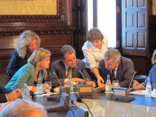 El texto ha sido aprobado en una Junta de Portavoces extraordinaria en la que, durante cerca de 40 minutos, la presidenta del Parlamento, Núria De Gispert, el presidente de la Generalitat, Artur Mas, los miembros de la Mesa y los líderes y portavoces de los grupos parlamentarios han consensuado un texto de rechazo.