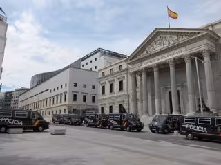 Un amplio dispositivo policial, compuesto por 19 furgones policiales, ha sido desplegado en los alrededores del Congreso de los Diputados en previsión de que el Movimiento 15 de mayo convoque una nueva protesta ante la sede de esta institución, similar a la que tuvo lugar este miércoles, que se prolongó hasta la madrugada.