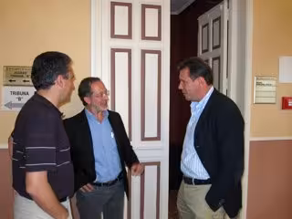 Manuel Saravia (Centro) Conversa Con Óscar Puente (Derecha)
