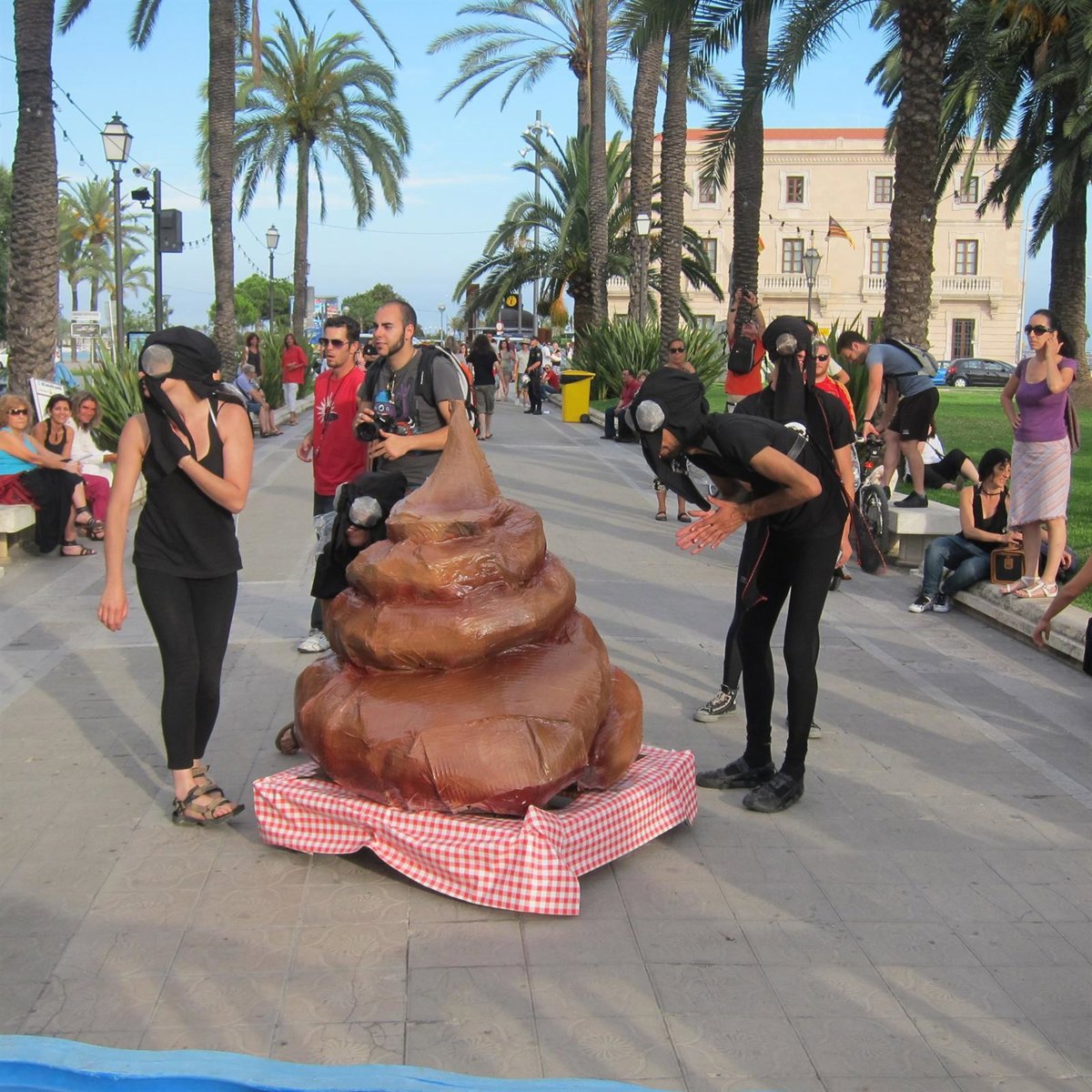 Así, el grupo de 'indignados' se ha manifestado este sábado con pancartas, otros objetos y pitidos, al tiempo que han hecho una parodia con una 'mierda' artificial, como una muestra de lo que para ellos representa el sistema político y económico actual.