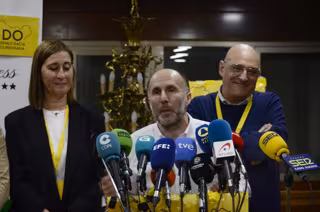 El alcalde de la ciudad y presidente de DO, Gonzalo Pérez Jácome, ofrece una rueda de prensa durante el seguimiento de la jornada electoral de los comicios autonómicos de Galicia, en el Hotel Princess, a 18 de febrero de 2024, en Ourense, Galicia (España) - Rosa Veiga - Europa Press