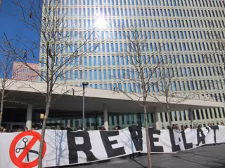 En la concentración, que ha contado con la presencia de fiscales como los Anticorrupción Emilio Sánchez Ulled y Fernando Bermejo, el Antidroga, Gerardo Cavero, y el de delitos de Odio y Discriminación, Miguel Ángel Aguilar, entre otros, se ha desplegado una gran pancarta con el mensaje: "Rebélate".