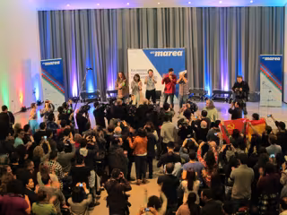 Antes de abandonar la Universidad, Iglesias ha dirigido unas palabras a los 600 estudiantes y simpatizantes que no han podido entrar en el aula magna por falta de aforo -la sala tenía una capacidad de unas 600 personas--: "Adelante que lo estamos tocando con la punta de los dedos, adelante que podemos ganar que el 20 podemos llenar las urnas con las sonrisas del cambio", ha proclamado.