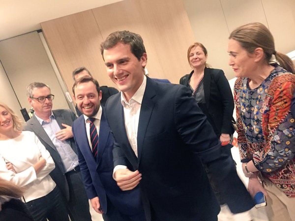 Durante el acto, el presidente de la formación naranja ha estado acompañado por miembros de la Ejecutiva como Fran Hervías, Fernando de Páramo, Antonio Espinosa y José Manuel Villegas, miembros del equipo económico como Luis Garicano y Francisco de la Torre, aspirantes a diputado como Miguel Gutiérrez y Marta Rivera y los portavoces del partido en el Ayuntamiento y la Comunidad de Madrid, Begoña Villacís e Ignacio Aguado.
