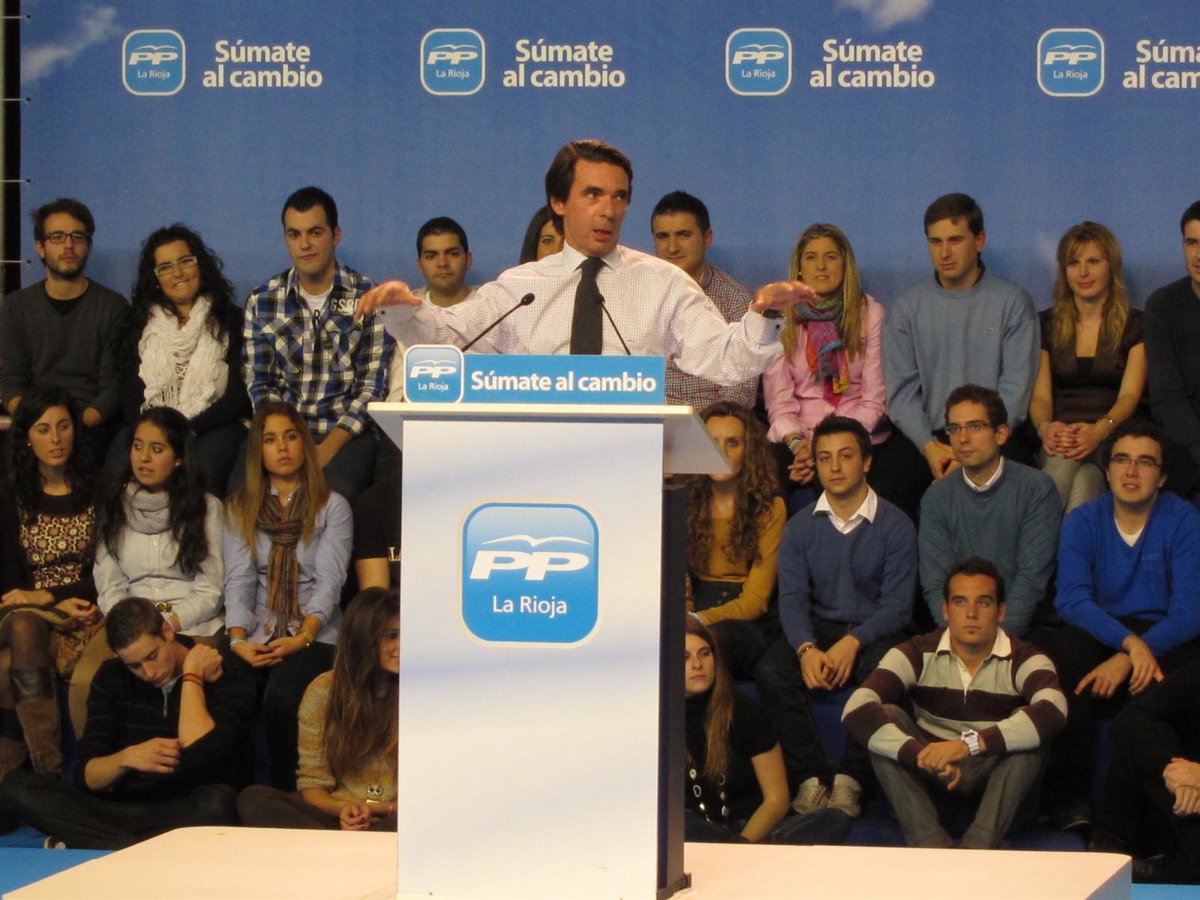 Aznar ha realizado estas declaraciones en un mitin electoral, al que han acudido unas 3.500 personas, según la organización, en el pabellón de 'Las Gaunas' de Logroño, junto al presidente del PP de La Rioja, Pedro Sanz, el candidato del PP de La Rioja al Congreso, Conrado Escobar, y la alcaldesa de Logroño, Cuca Gamarra.