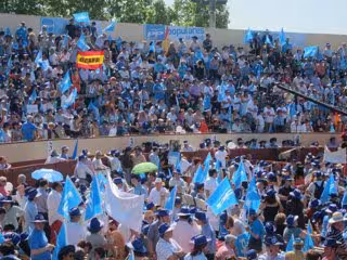 La plaza de toros de esta localidad madrileña ha acogido a unas 5.000 personas, según la organización, para celebrar un encuentro con los apoderados e interventores del PP de Madrid, en un acto que ha contado también con la presencia de la presidenta de la Comunidad y candidata a la reelección por el PP, Esperanza Aguirre, y la portavoz en el Congreso, Soraya Sáenz de Santamaría.