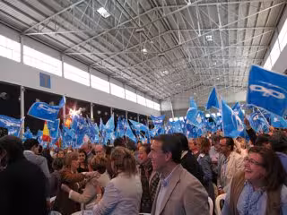 A las 12.34 minutos hacía su entrada Mariano Rajoy en el pabellón de la Feria de Valladolid donde fue recibido por una marea de banderas azules con las siglas del PP ondeadas por las personas que asistieron a este mitin y que no dejaron de saludar y besar al líder de los 'populares'