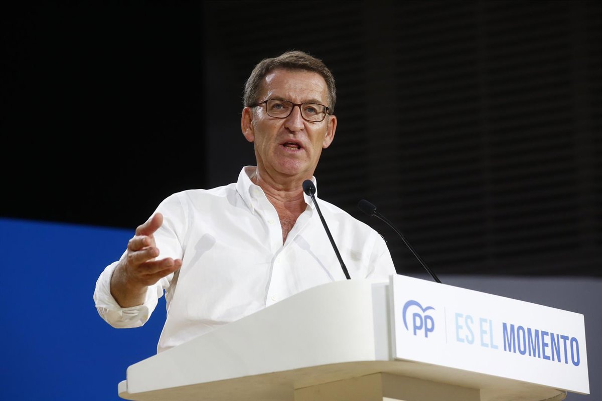 El presidente del Partido Popular, Alberto Núñez Feijóo, interviene durante un acto en el Auditorio de la Diputación de Alicante (ADDA), a 12 de julio de 2023, en Alicante, Comunidad Valenciana (España). Este mitin electoral se realiza de cara a las el - Joaquín Reina - Europa Press