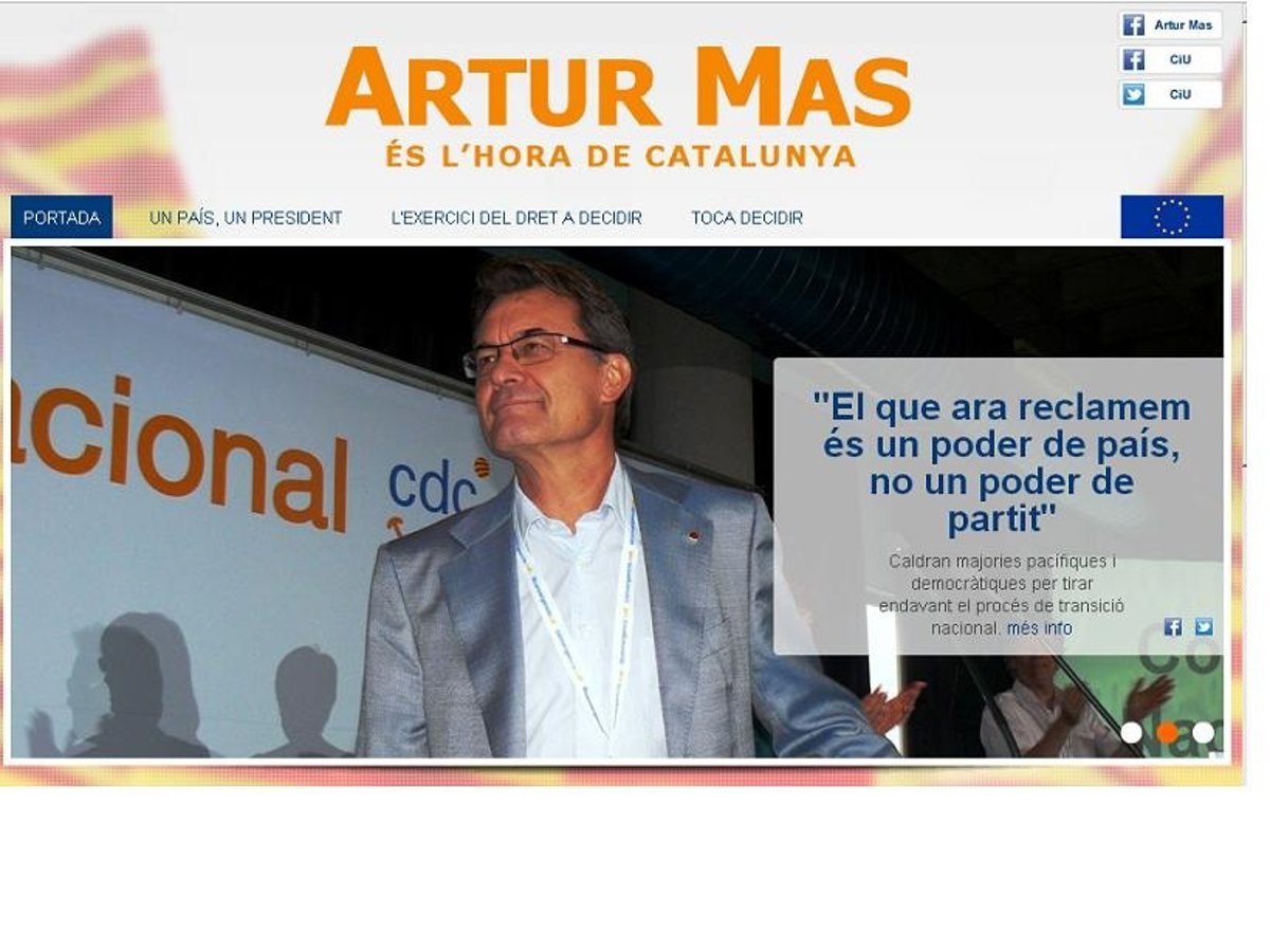 El presidente de la Generalitat, Artur Mas, ha lanzado su página web como candidato de CiU a las elecciones al Parlamento catalán del 25 de noviembre bajo el lema 'Es la hora de Cataluña', desde la cual se puede acceder a su biografía, discursos y defensa del derecho a decidir.