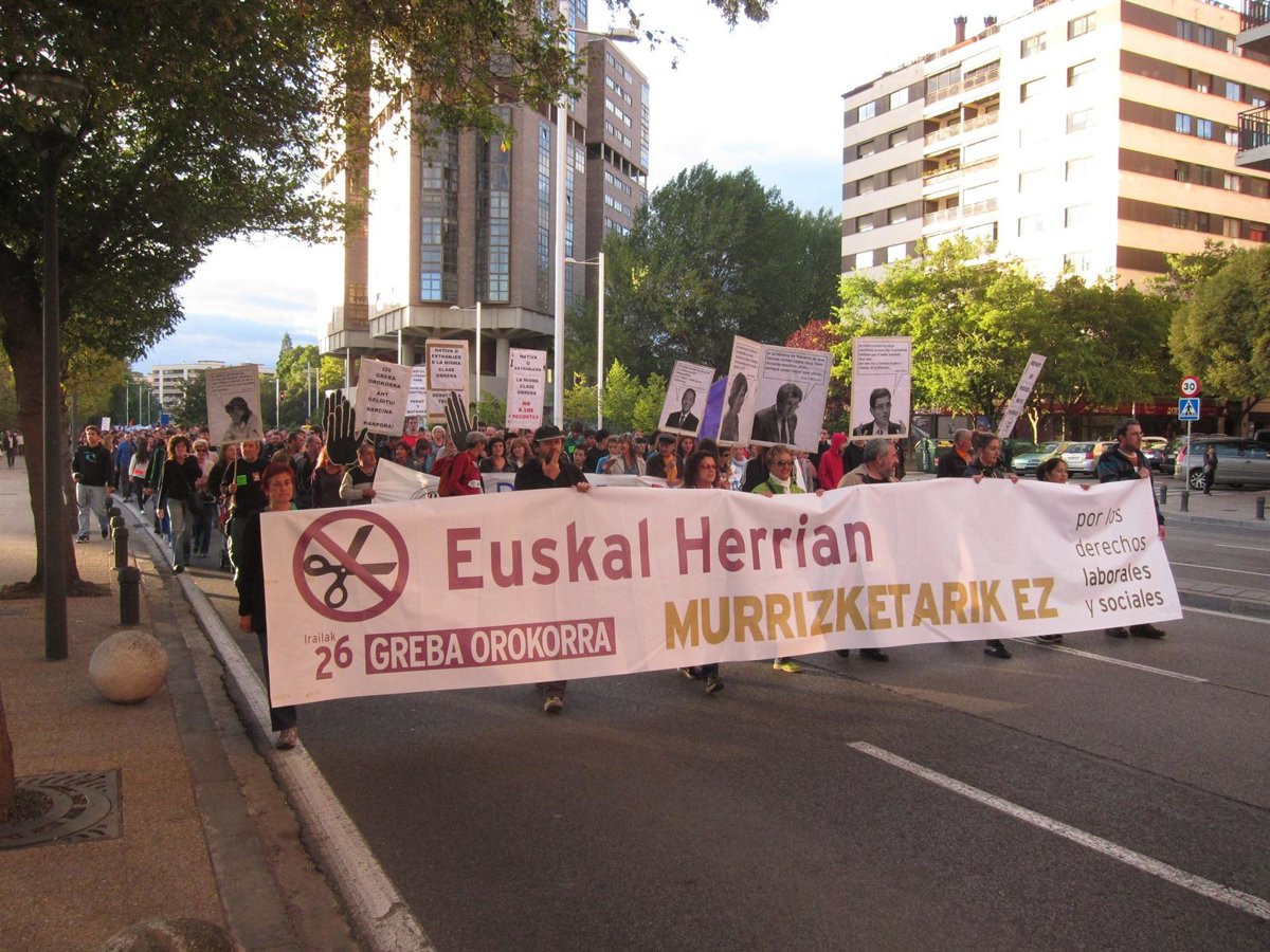 Miles de personas han participado esta tarde en Pamplona en la manifestación que han convocado distintos colectivos sociales en el marco de la huelga general de los sindicatos nacionalistas en Navarra.