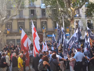 Pasados casi diez minutos, los militantes han decidido desistir e irse del lugar rodeados de un cordón policial entre abucheos y gritos de 'fuera franquistas' y 'fuera fascistas'.