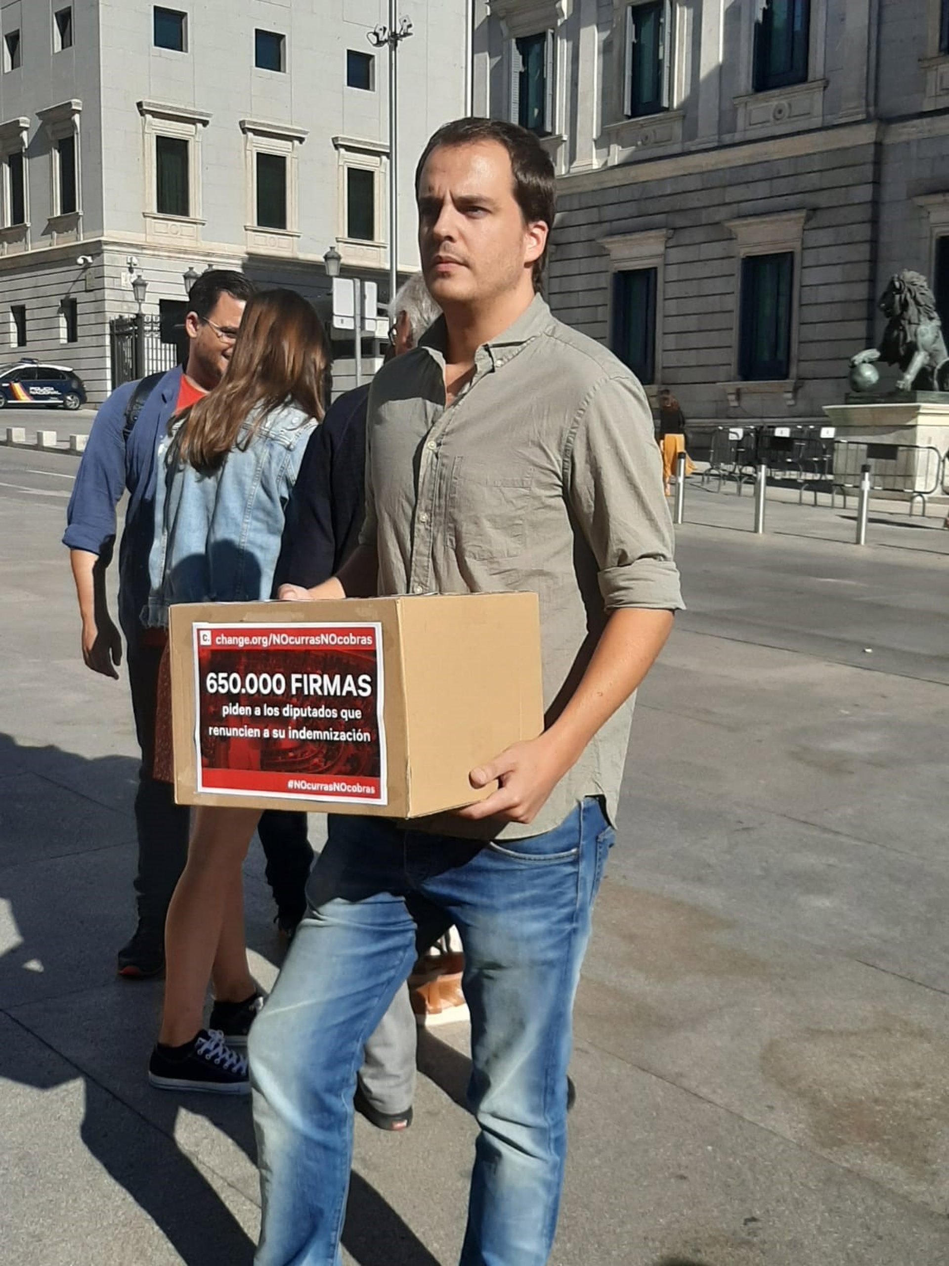 Txerra Pardina, impulsor de la campaña No Curras, no Cobras frente al Congreso - ENTREGA FIRMAS EN EL CONGRESO