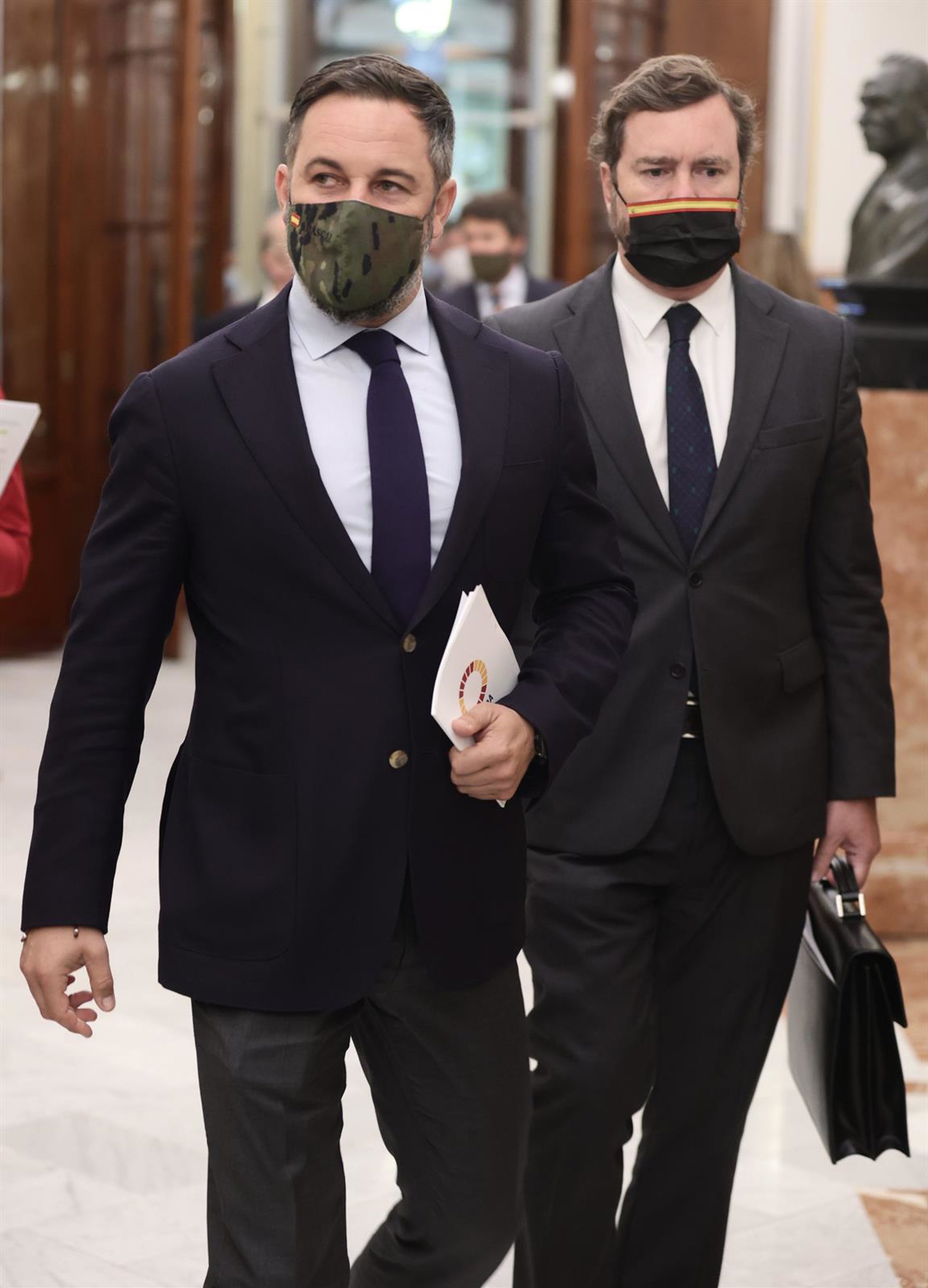 El líder de Vox, Santiago Abascal (i), y el portavoz de Vox en el Congreso, Iván Espinosa de los Monteros, a su llegada a una sesión plenaria en el Congreso de los Diputados, a 20 de octubre de 2021, en Madrid, (España). En este pleno, marcado por el re - Eduardo Parra - Europa Press
