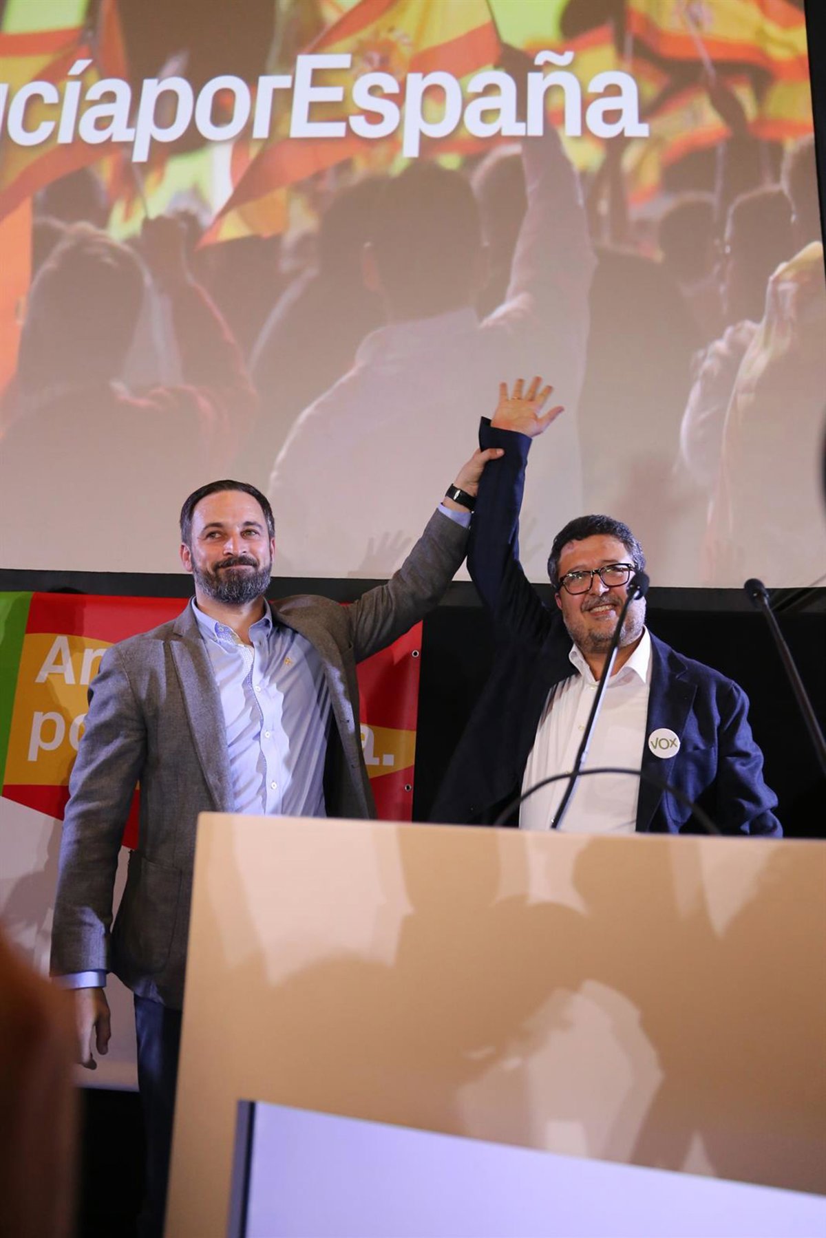 En su comparecencia tras el escrutinio de los votos, Abascal, que ha sido recibido al grito de "presidente, presidente", ha señalado que los andaluces "han hecho historia y se han sacudido 36 años de régimen socialista, diciéndole a los españole que eso también se puede hacer".