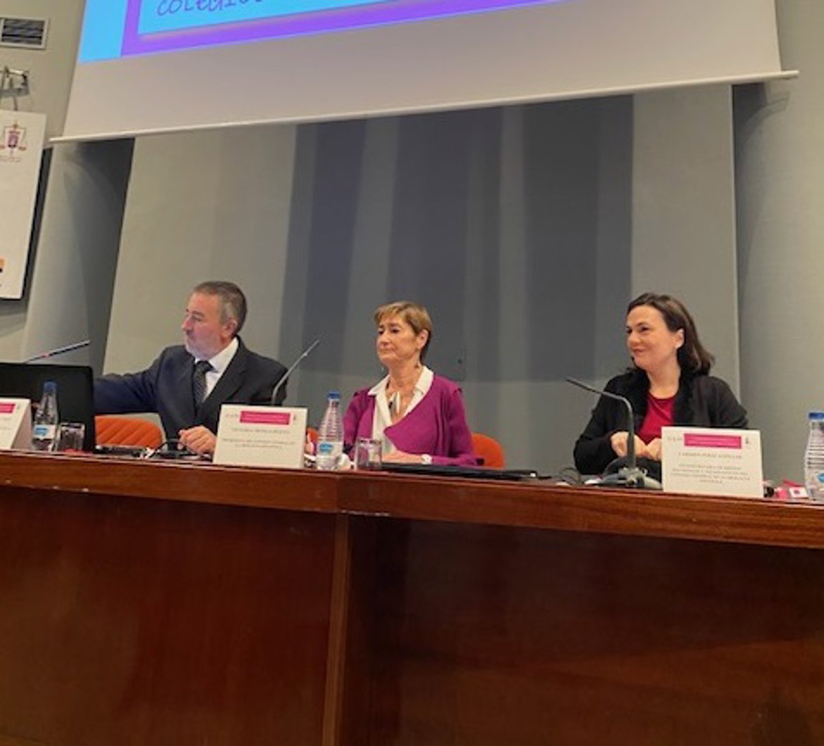 De izqda a dcha: Sergio Herrero, decano del Colegio de la Abogacía de Gijón; Victoria Ortega, presidenta de la Abogacía, y Carmen Pérez Andújar, vicesecretaria de Medios Materiales - ABOGACÍA ESPAÑOLA