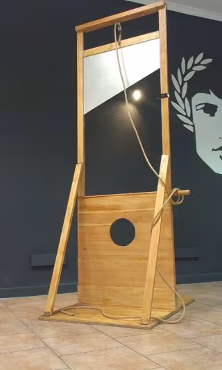 Las guillotinas que se pueden encontrar en esta tienda están fabricadas en madera de pino maciza, con una altura de dos metros, y de forma totalmente artesanal.