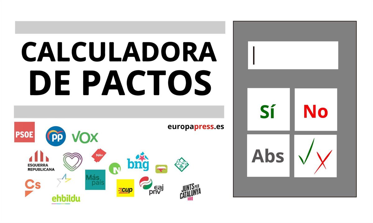 Comprueba en esta calculadora de EpData las mayorías que suman y las que no suman para superar una sesión de investidura. Más abajo puedes ver los posibles pactos que forman mayorías para que Pedro Sánchez pueda ser investido en primera y en segunda votación: