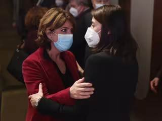Archivo - La Fiscal General del Estado, Dolores Delgado (i), conversa con la ministra de Justicia, Pilar Llop, en un desayuno Informativo de Europa Press. - Eduardo Parra - Europa Press - Archivo