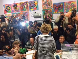 Pasadas las 11.30 horas, Aguirre salía de votar del colegio electoral Pi i Margall, donde una decena de personas la han despedido con gritos a favor de la candidata de Ahora Madrid, Manuela Carmena.
