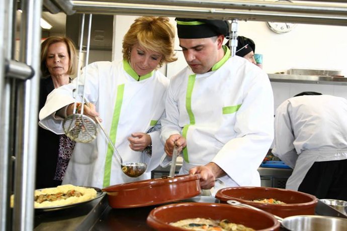 La presidenta de la Comunidad, Esperanza Aguirre, y el alcalde de Móstoles, Esteban Parro, inauguraron la nueva Escuela de Hostelería y Turismo 'Simone Ortega' de Móstoles, con la que el Gobierno regional dota de 600 nuevas plazas públicas de este tipo de Formación Profesional al Sur de la región y alcanza ya las 2.000 de estas características.