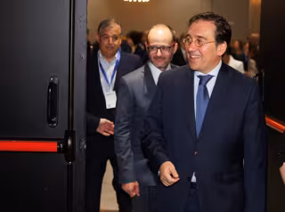 El ministro de Asuntos Exteriores, Unión Europea y Cooperación, José Manuel Albares, a su llegada a la III edición del foro Fondos Europeos III: España, por el liderazgo global en economía verde y digital, en el Círculo de Bellas Artes. - Eduardo Parra - Europa Press