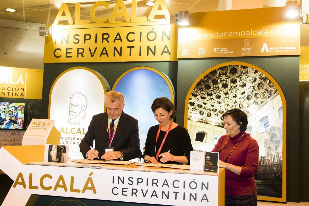 La concejal de Turismo del Ayuntamiento de Alcalá de Henares, María Aranguren, y el director gerente del Thyssen, Evelio Acevedo, han presentado este viernes en el stand de Alcalá de Henares el importante acuerdo institucional firmado entre el Ayuntamiento y el Museo para una puesta en común del valor patrimonial de ambas instituciones.