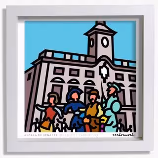 'Minuni' es una iniciativa emprendedora, un sello artístico creado por Pepe de Rojas, que ha representado no solo el patrimonio de la ciudad de Alcalá de Henares, sino también parte de la vida del municipio como la obra dedicada a la Plaza de Cervantes, en la que aparece un típico pasacalles festivo.