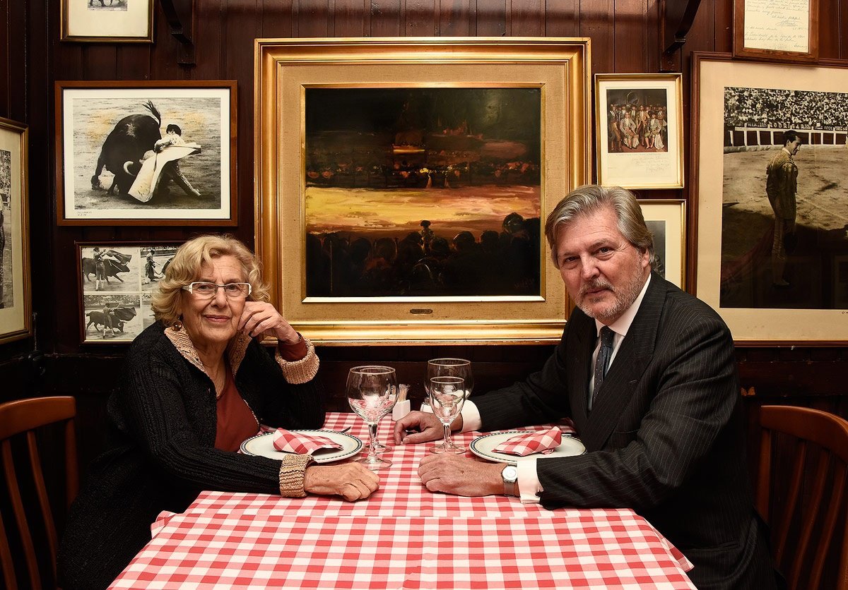 El ministro de Educación, Cultura y Deporte, Íñigo Méndez de Vigo, y la alcaldesa de Madrid, Manuela Carmena, han mantenido este jueves un almuerzo en una típica tasca madrileña, un encuentro que se produce justo una semana después de que el ministro añadiera a sus responsabilidades la de portavoz del Ejecutivo de Mariano Rajoy.