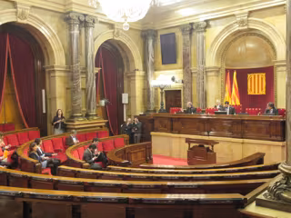 Después de consultar al Síndic de Greuges, que recomendó obedecer a la JEC, se ha tapado el lazo amarillo colgado del balcón de la Generalitat con una pancarta con el mismo mensaje en catalán e inglés --'Libertad presos políticos y exiliados'-- y un lazo blanco tachado de rojo.