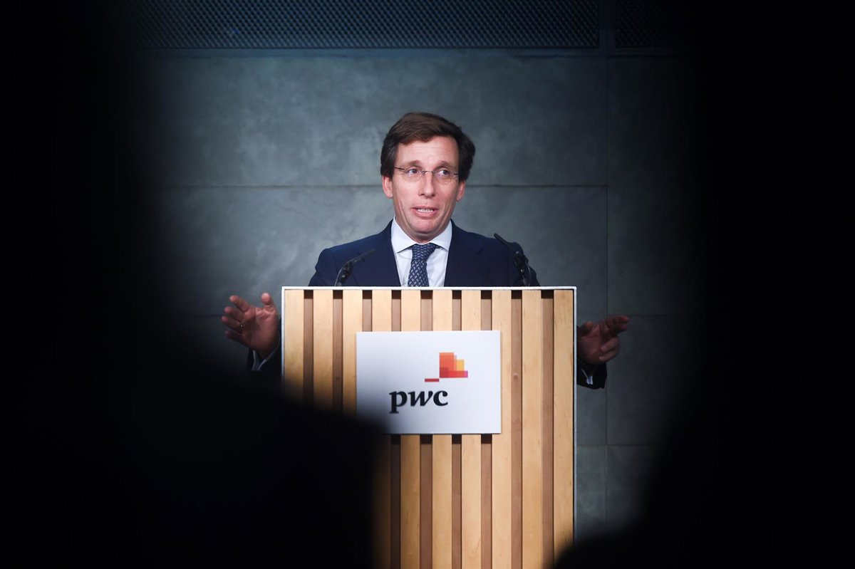 El alcalde de Madrid, José Luis Martínez-Almeida, durante la celebración del 20º aniversario de la creación de la fundación de la red de firmas PWC, en el Auditorio Rafael del Pino - Gustavo Valiente - Europa Press