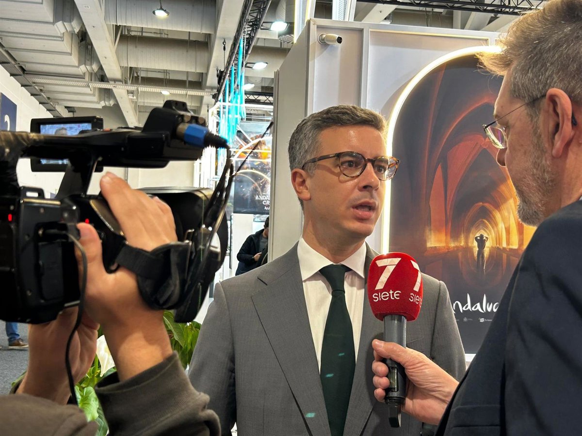 El vicepresidente de Prodetur, Rodrigo Rodríguez Hans, en una atención a medios, en foto de archivo. - DIPUTACIÓN DE SEVILLA