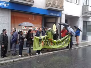 Este grupo de personas que acudió al escrache en casa del alcalde anteriormente se trasladó a la sede del PP de la localidad así como a las puertas del Ayuntamiento en donde estaba el propio alcalde y en donde la policía les prohibió el paso.