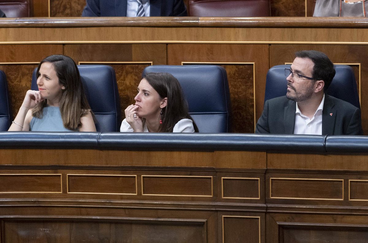 Archivo - (I-D) La ministra de Derechos Sociales y Agenda 2030 y secretaria general de Podemos, Ione Belarra; la ministra de Igualdad, Irene Montero y el ministro de Consumo, Alberto Grazón, durante una sesión plenaria, en el Congreso de los Diputados, - Alberto Ortega - Europa Press - Archivo