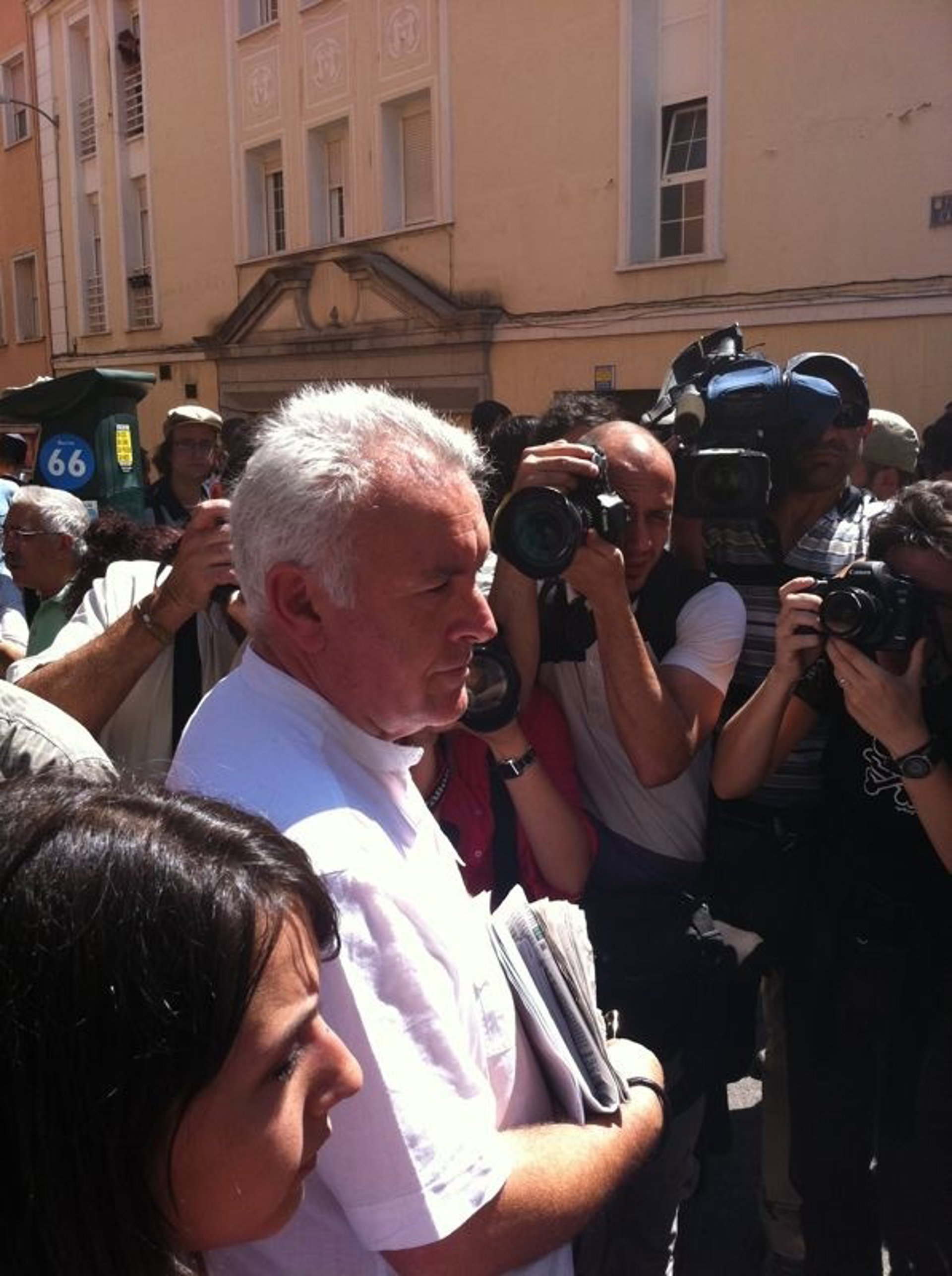 Tras conocer la noticia a través de la policía municipal de que la familia de Anwar, un libanés de 55 años en paro que llevaba dos años sin pagar la hipoteca de su vivienda, no iba a ser desahuciada, la gente ha estallado en gritos y aplausos para increpar minutos más tarde al líder de IU mientras éste hablaba con los medios de comunicación.