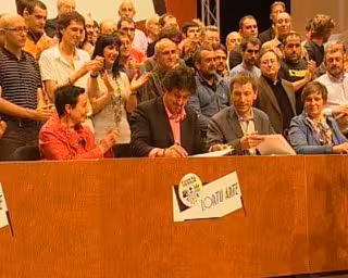 El documento conjunto fue presentado hoy en el Palacio Euskalduna, en un acto con numerosas actuaciones musicales y de danza, a cuya finalización procedieron a su firma varios representantes de EA, encabezados por su secretario general, Peio Urizar, y de la izquierda abertzale, como Rufi Etxeberria, Jone Goirizelaia o Txelui Moreno.