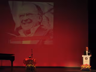 Carrillo hijo, en un escenario presidido por la imagen de su padre y una urna simbólica aunque sin cenizas, ha agradecido en nombre su familia el calor de los homenajes recibidos y se ha mostrado orgulloso de ser hijo de una persona que se sentía asturiano y de Gijón, tan de Gijón, ha dicho, que hasta seguía con cierta nostalgia las andanzas del Sporting.