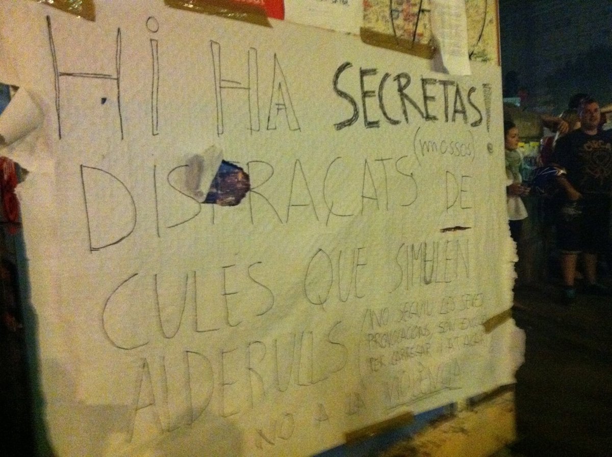 Durante todo el tiempo que duraron los incidentes, los 'indignados' acampados en el centro de la plaza se han mostrado pacíficos, y nadie les ha invadido su espacio.