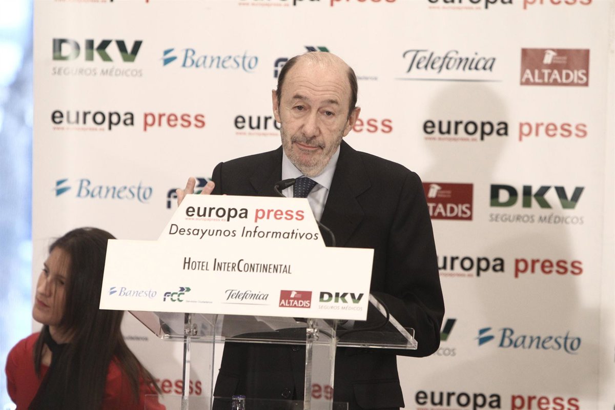 Rubalcaba realizó estas afirmaciones durante su intervención en los Desayunos Informativos de Europa Press, donde expuso un análisis del resultado electoral italiano, que ha provocado un incremento de la prima de riesgo española hasta los 415 puntos básicos.